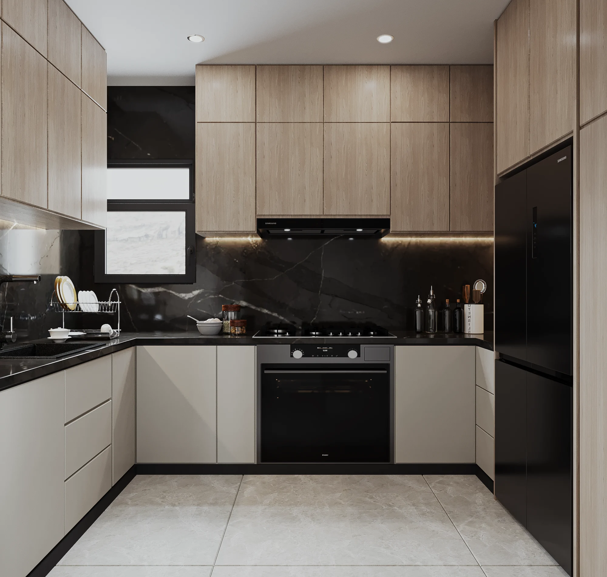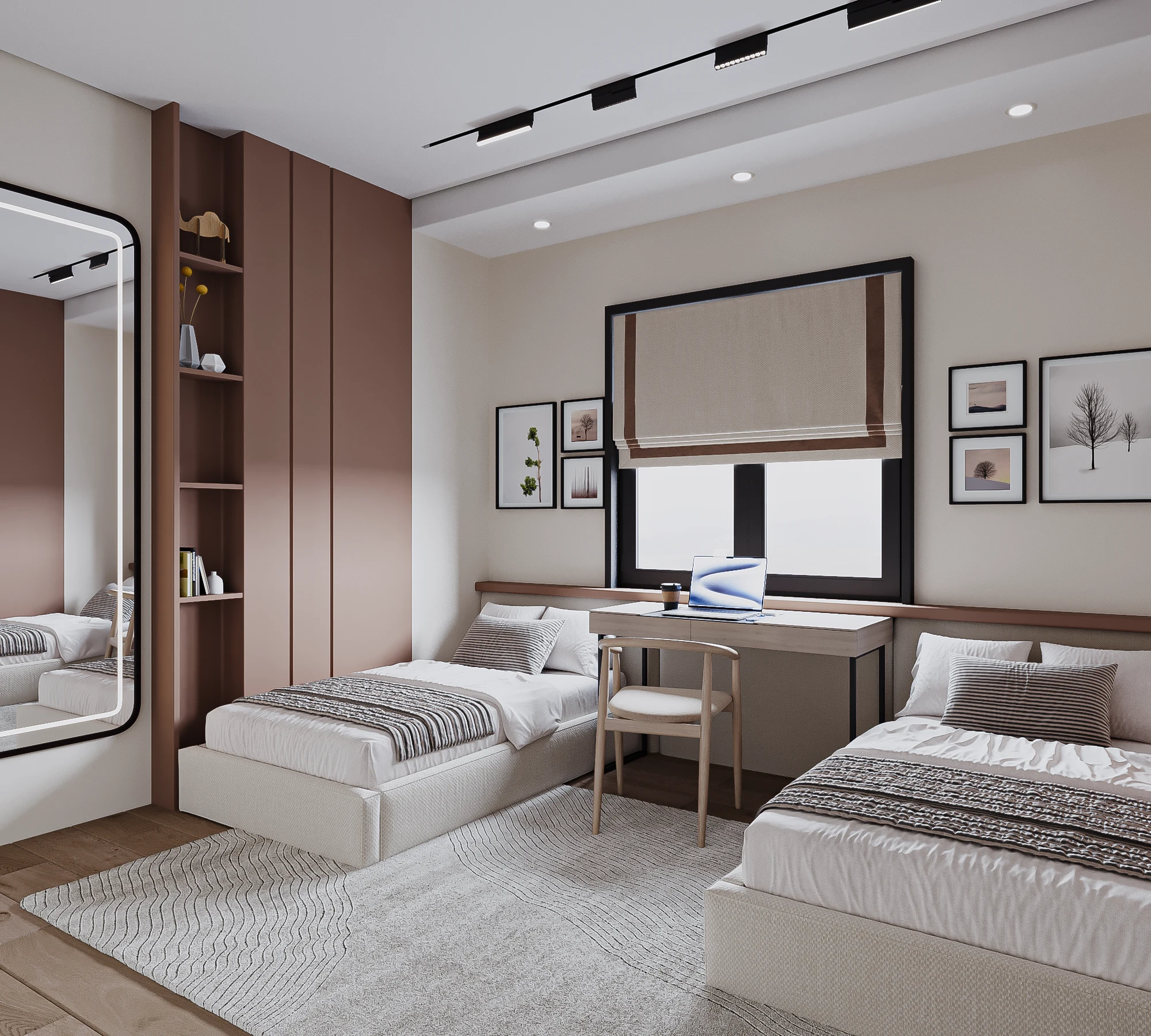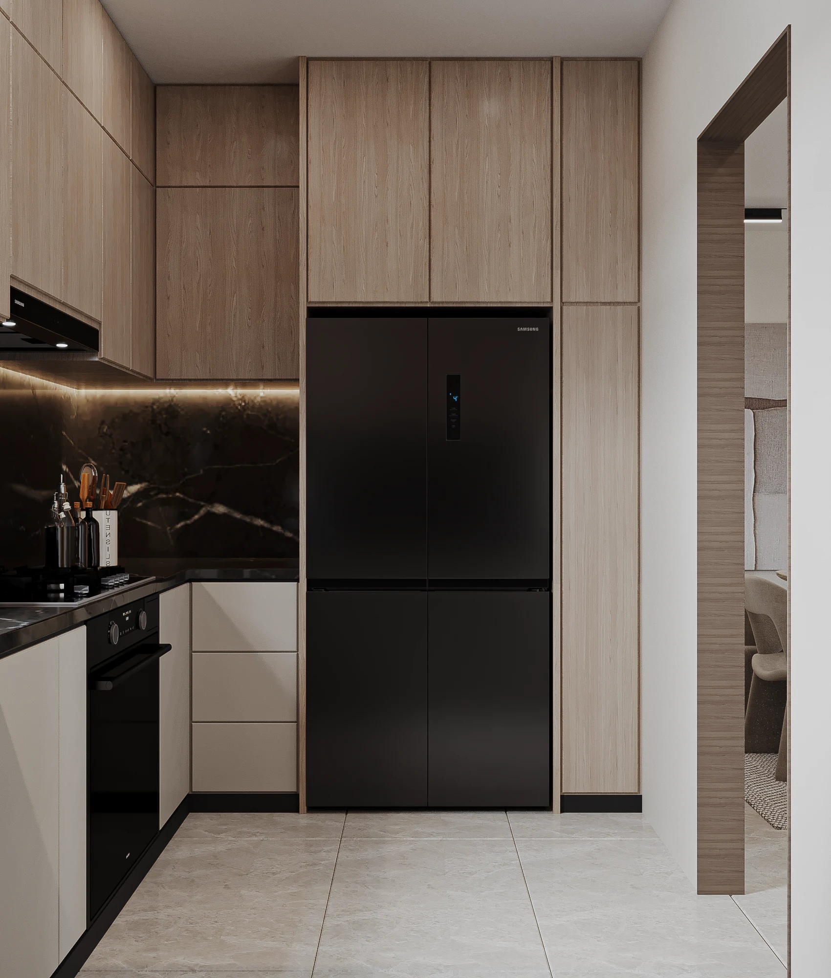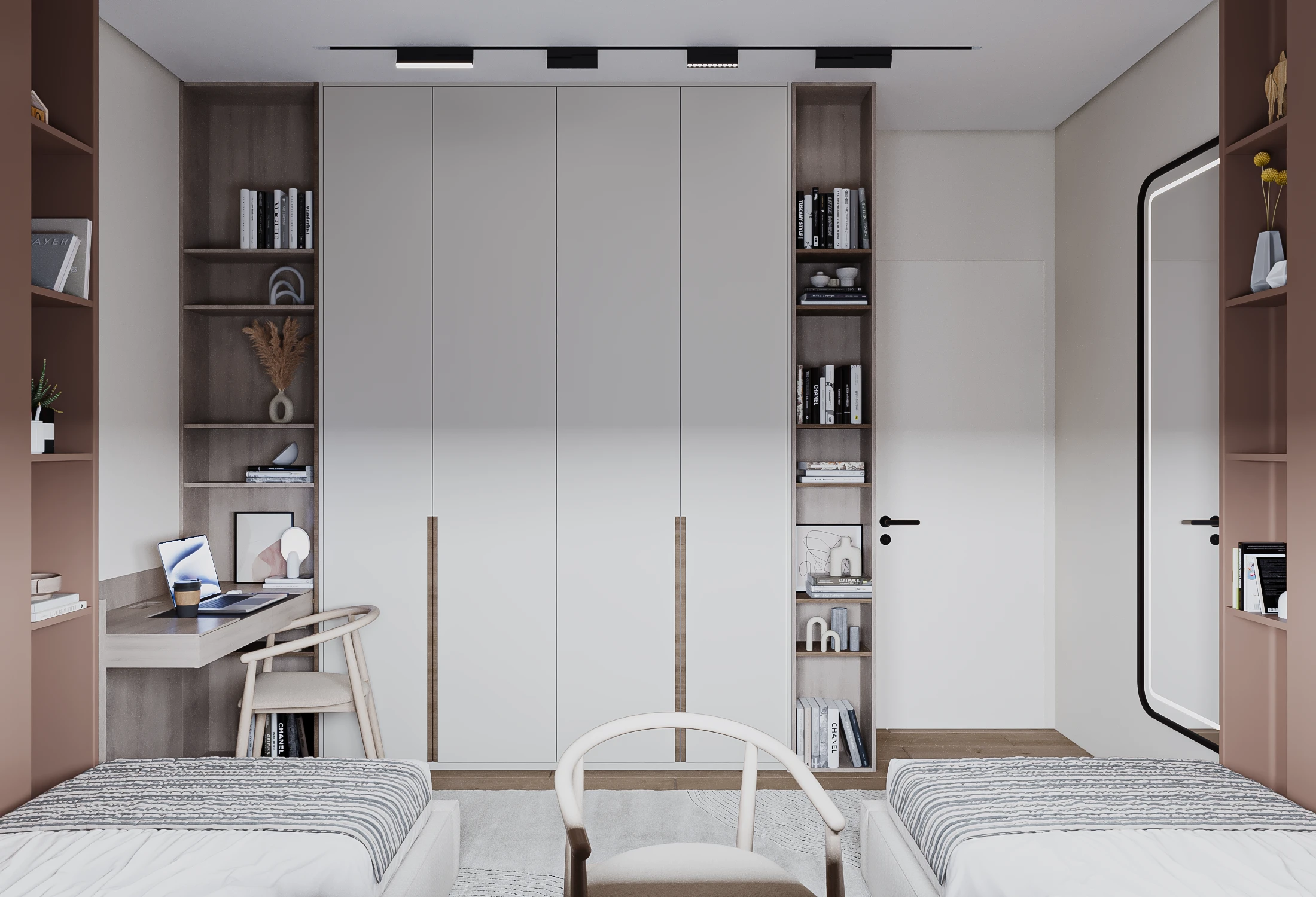 Capstone delivered a minimalist apartment, utilizing a sophisticated palette of soft greys, natural woods, and simple geometries. The design emphasizes open space and functionality, with integrated storage and clean-lined furniture, all as part of a turn-key project encompassing interior design, fit-out, and furnishing.