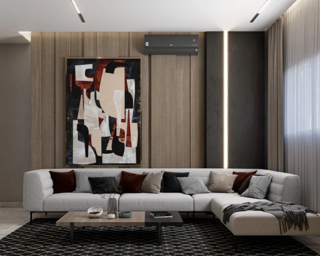 Capstone delivered a turnkey villa with dark wood panels, elegant lighting, and plush furnishings, creating a luxurious ambiance through integrated design and execution.