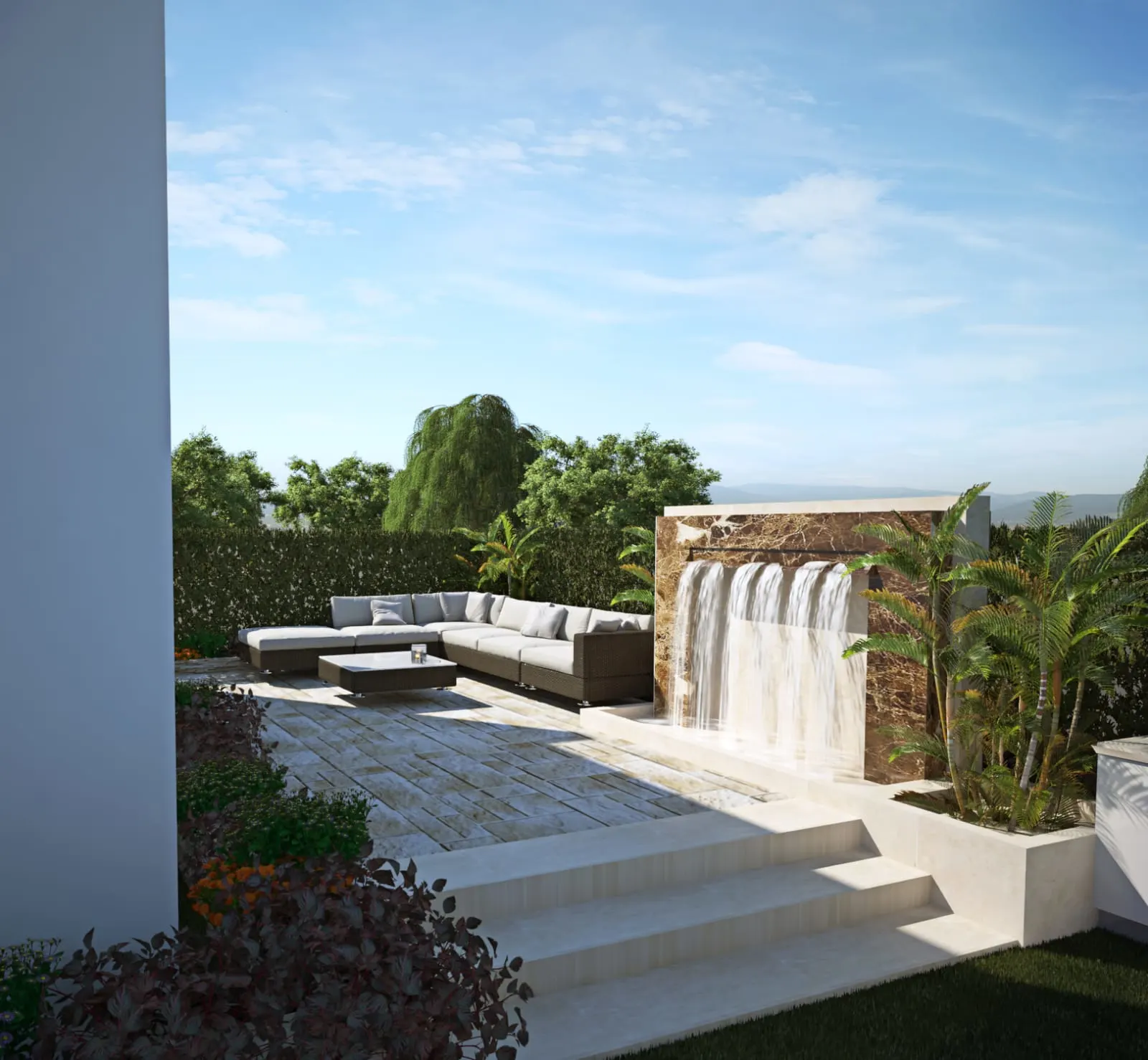 Capstone delivered a contemporary residential villa, featuring a palette of sleek greys, pristine whites, and warm woods. Architectural details like striking roof designs and integrated water features elevate the space, all as part of a turn-key project encompassing comprehensive interior design, contracting, and furnishing.