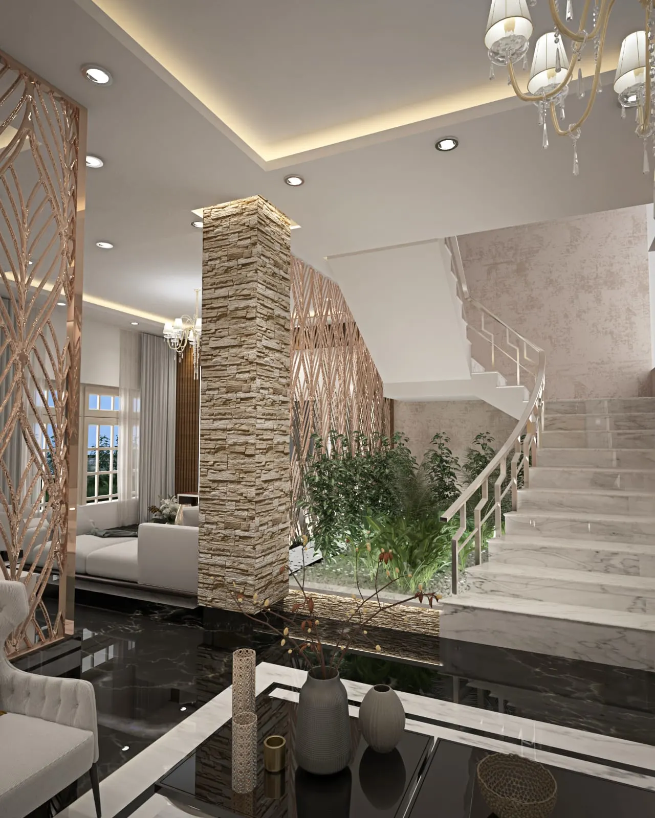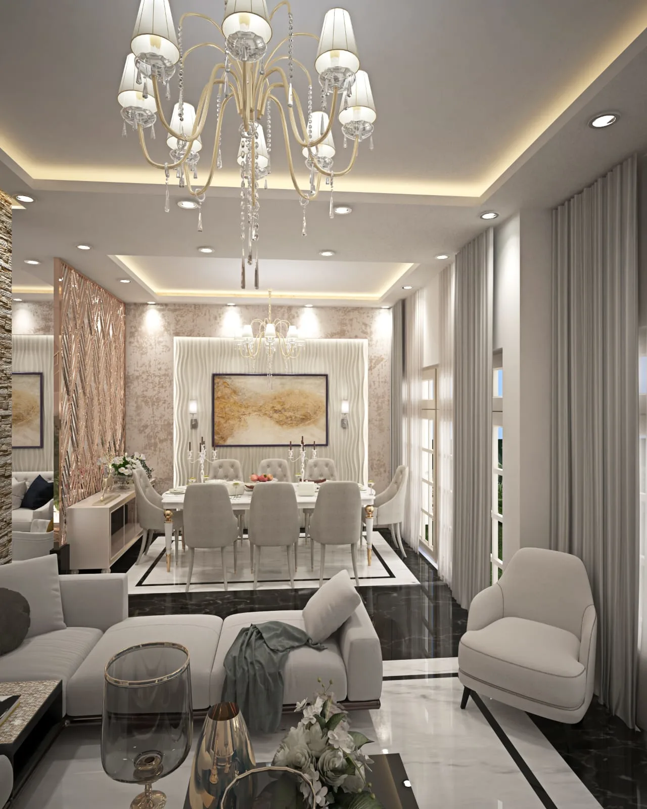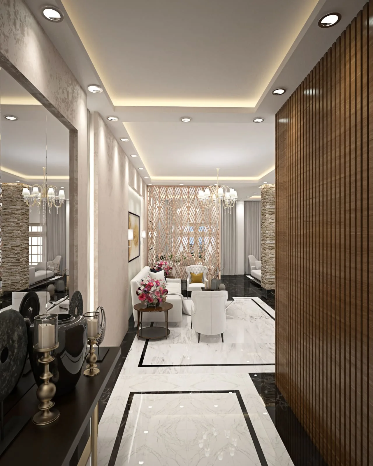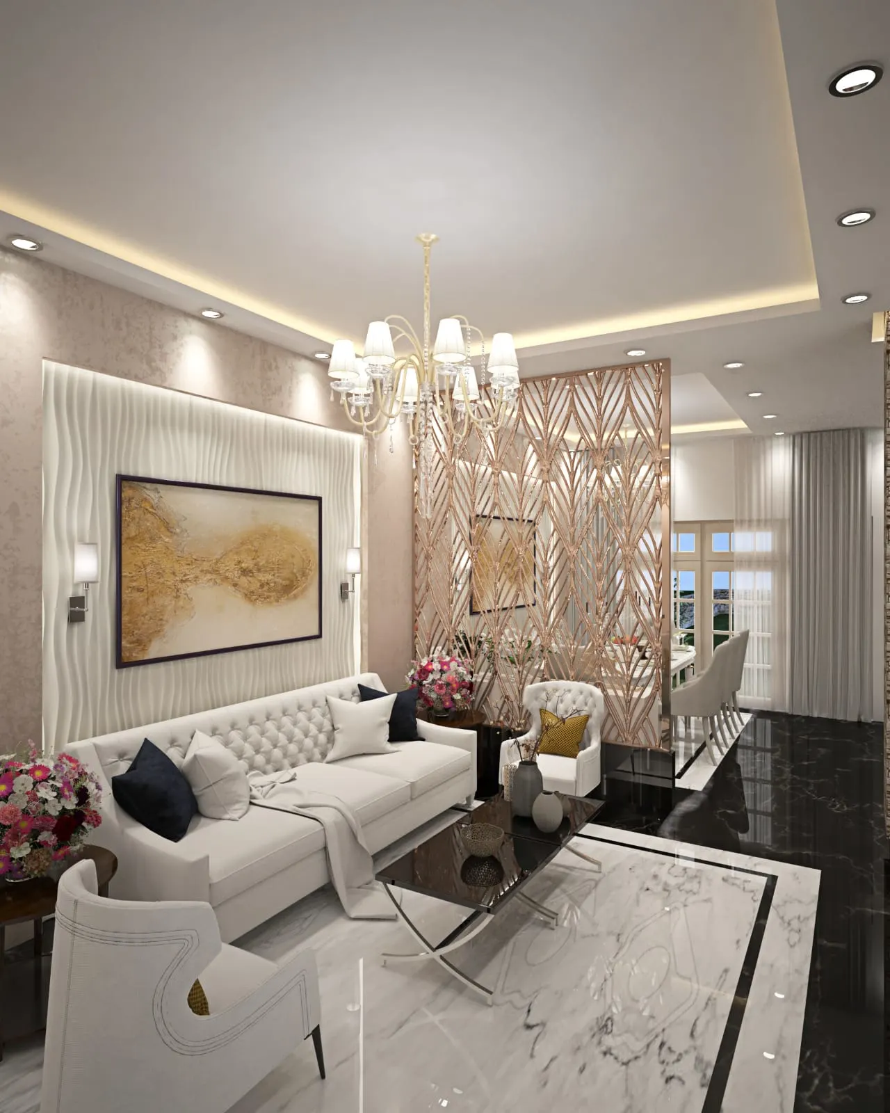 Capstone delivered a turnkey residential villa with marble, wood, and gold accents, creating an opulent yet comfortable ambiance that seamlessly blends design, contracting, and furnishing.